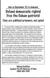 This collection contains materials about Cuban political prisoners being held in the United States. The main focus is on the Cuban Five. The Cuban Five are five Cuban men who are in U.S. prison, serving four life sentences and 75 years collectively, after being wrongly convicted in U.S. federal court in Miami, on June 8, 2001. The Five were falsely accused by the U.S. government of committing espionage conspiracy against the United States, and other related charges. But the Five pointed out vigorously in their defense that they were involved in monitoring the actions of Miami-based terrorist groups, in order to prevent terrorist attacks on their country of Cuba.