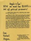 Flyer with handwritten title announcing Angela Davis' release from prison while demanding the same for Ruchell Magee. Three typed paragraphs about Ruchell, Angela's codefendent, whose trial for murder-kidnap-consipiracy is to begin on August 1. Magee was the only person to survive the attempt to escape from the Marin County Courthouse in 1970, which was led by Jonathan Jackson. Magee is accused of killing Judge Harold Haley, but witnesses claim that police shot the judge while trying to stop the escape. The flyer states that Magee has been in jail for the last 20 years, since he was 13, and has been unable to exercise his right to free speech or to an appeal of his case. Instead, guards have brought him into court in chains. For the last five years, Magee has also been acting as a jailhouse lawyer, teaching other incarcerated people about the prison system.